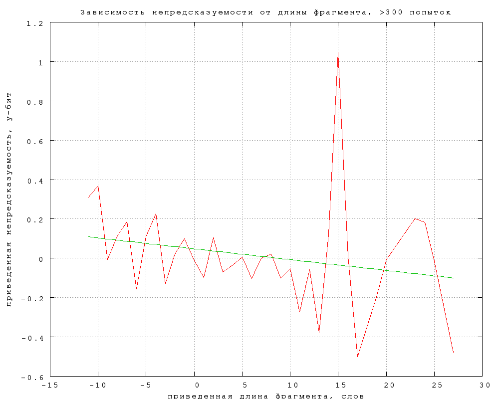 - среднее значение вычиталось из непредсказуемости и связанности, а средняя длина из длины фрагмента для каждой категории отдельно